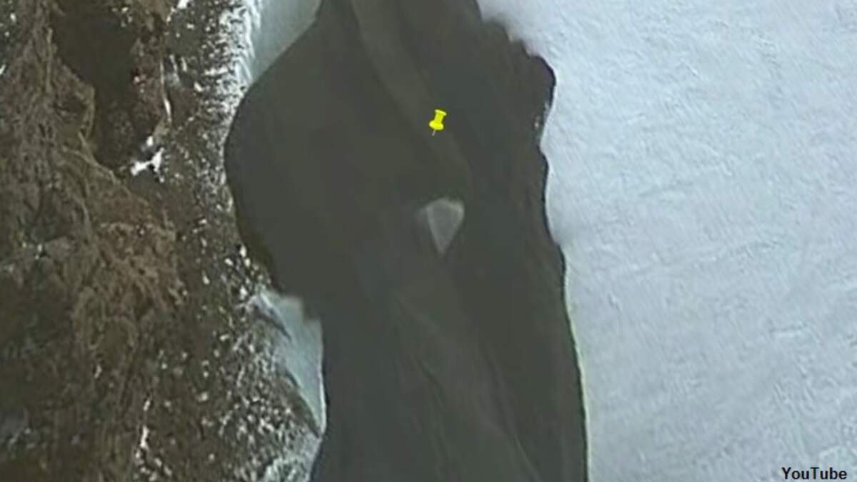 An anomaly hunter examining Google Earth images of Antarctica believes that he may have stumbled upon a photo of a mysterious craft seemingly flying through the air. The strange discovery was reportedly made by YouTube user 'MrMBB333,' who uploaded a video detailing his find earlier this week. The oddity in question sits in the shadow of a massive ice shelf and appears to be almost triangular in shape. Based on the way in which the object appears to be reflecting light, he argues that it is airborne and speculated that the anomaly measures a whopping 300 feet wide.