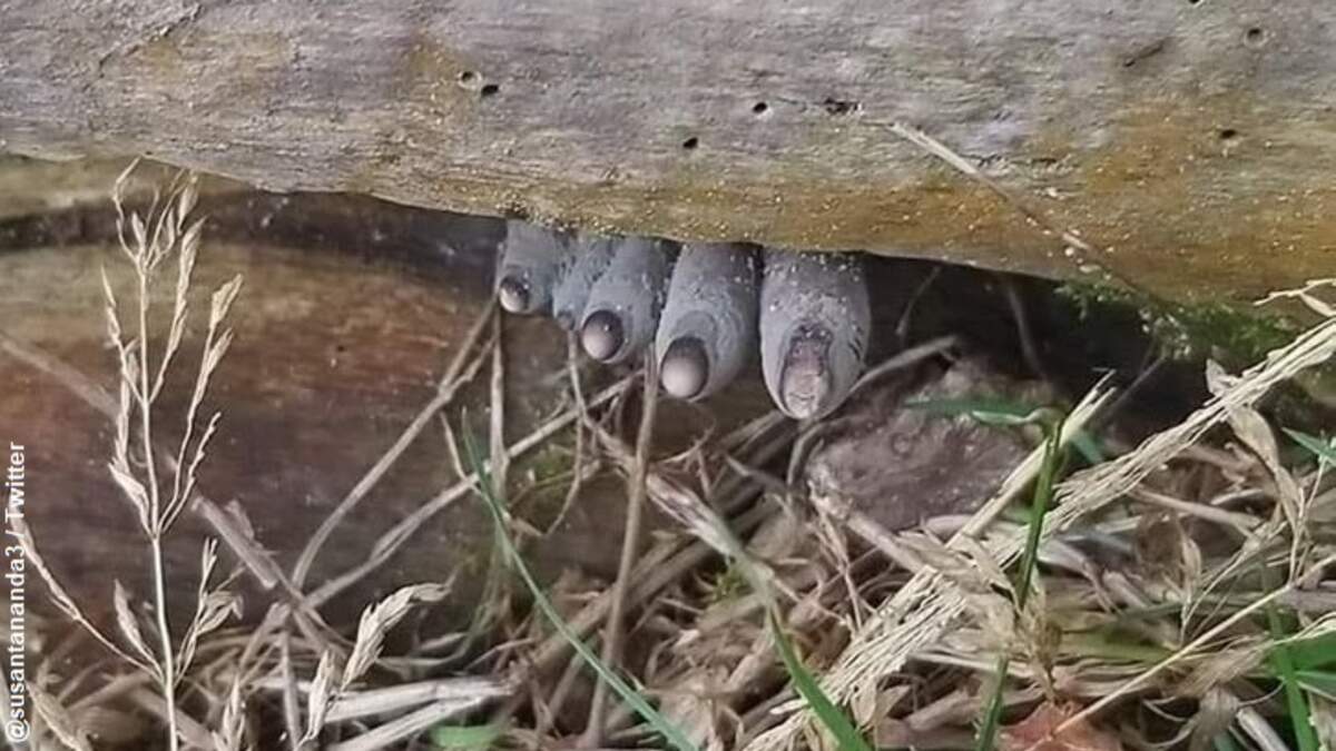 A bizarre image that popped up online earlier this week appears to show some kind of monstrous foot, although the true nature of the creepy sight is less nightmarish that one might suspect. The weird photo was posted to Twitter on Monday by Indian Forest Worker Susanta Nanda, who asked his followers "can you identify this animal?" The image features what seem to be a set of odd-looking toes sticking out from behind a piece of wood.